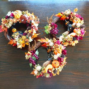 出来上がったばかりのハロウィンリース3つ