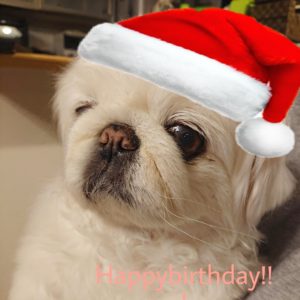 アプリでサンタの帽子を被せてみました。かわいく似合ってますლ(╹◡╹ლ) オヤバカです。。。