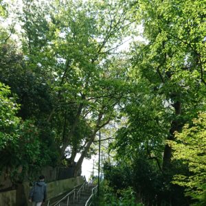 長い階段を登り、新緑が綺麗です~