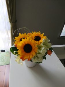 先日、ひまわりのアレンジが届きました😊