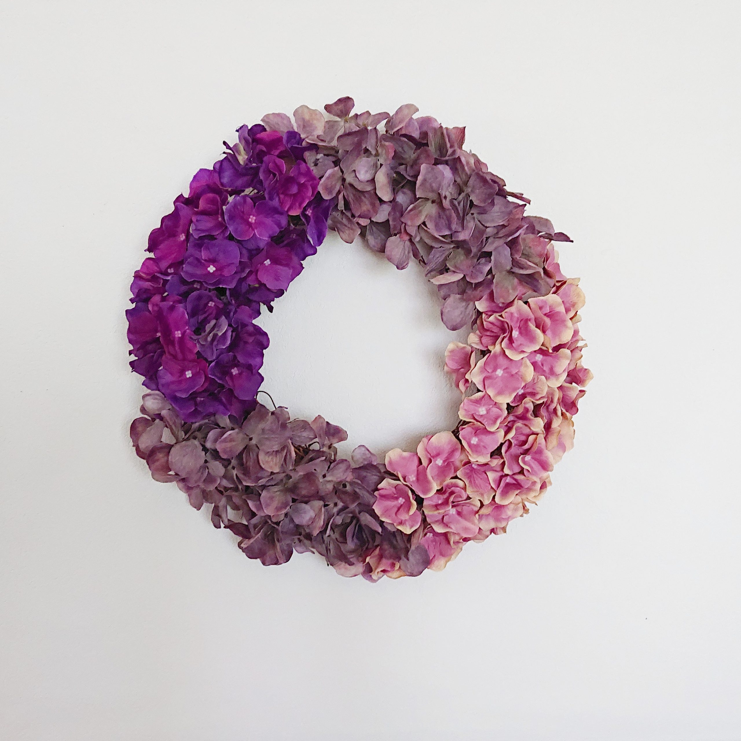 アーティフィシャルフラワーのハイドレンジアを使ったグラデーションリースの紹介です~