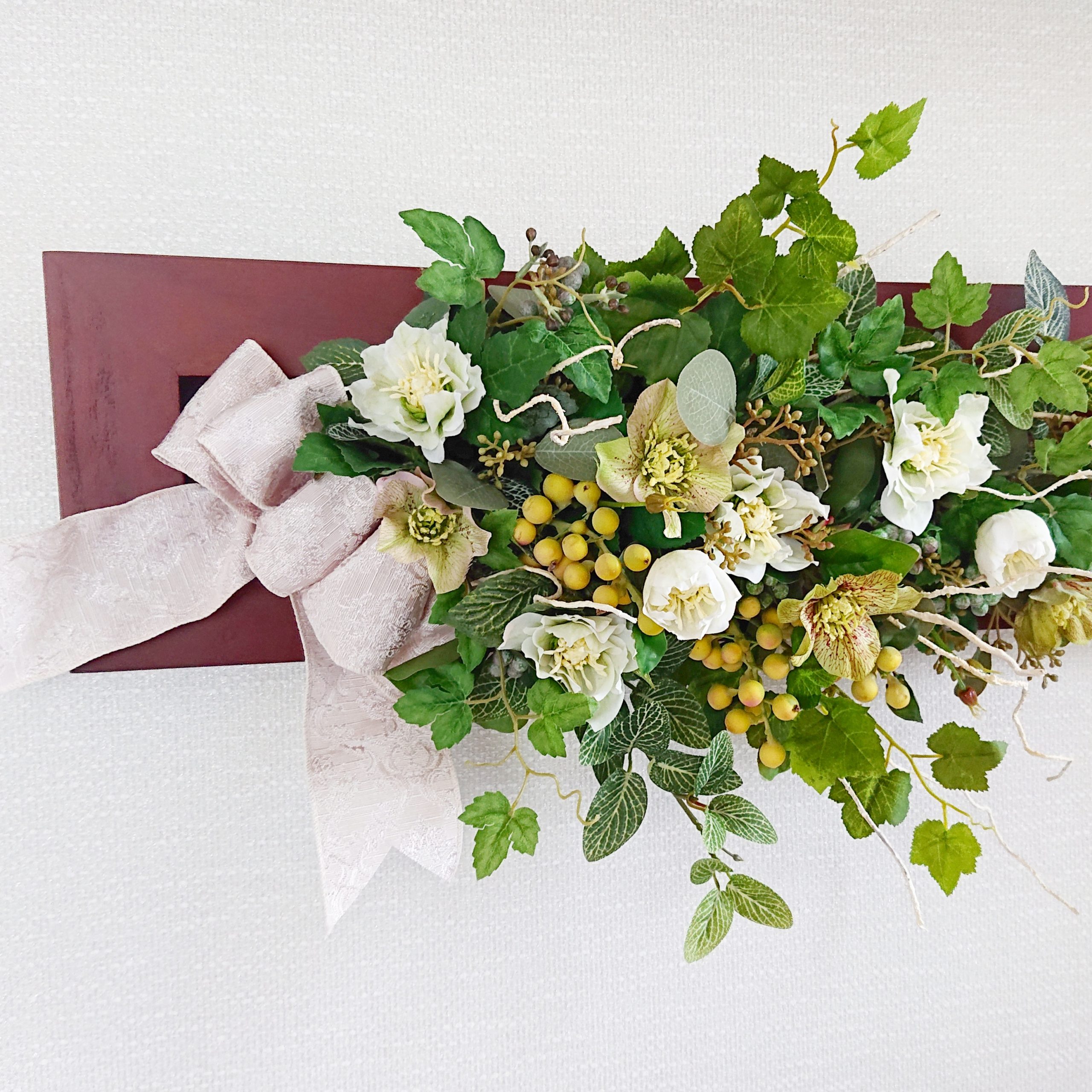 フレームを使ったアーティフィシャルフラワーのアレンジメントのご紹介です♡