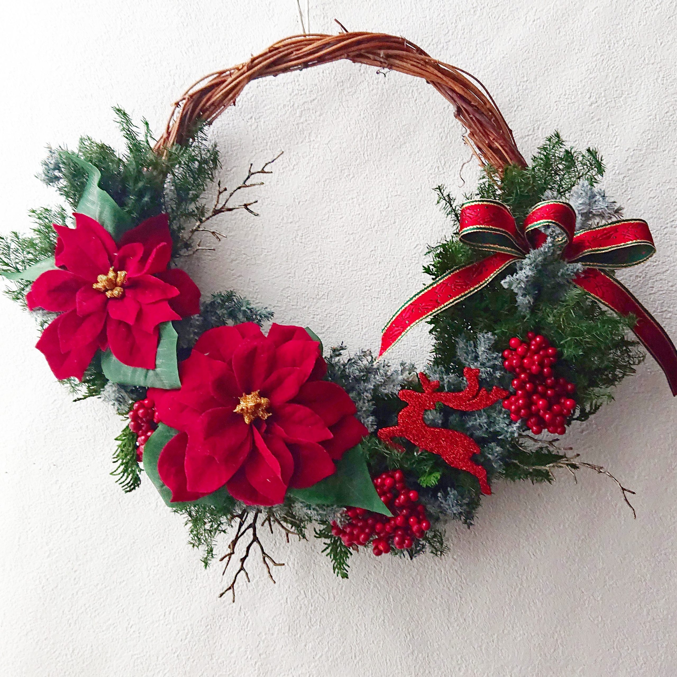 キラキラのトナカイさんをポイントにした大人かわいいリースです☆