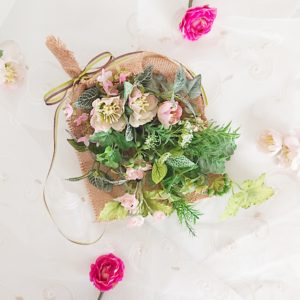 可愛らしいピンクのクリスマスローズを使った