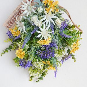 お花やグリーンを束ねて壁に飾る物です